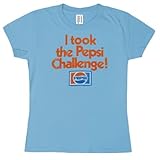 This sky blue ladies tissue t-shirt comes to you from Pepsi! Distressed artwork from the Pepsi challenge is seen on the front of this shirt. "I Took the Pepsi Challenge" is written in distressed print on the front. Awesome find!